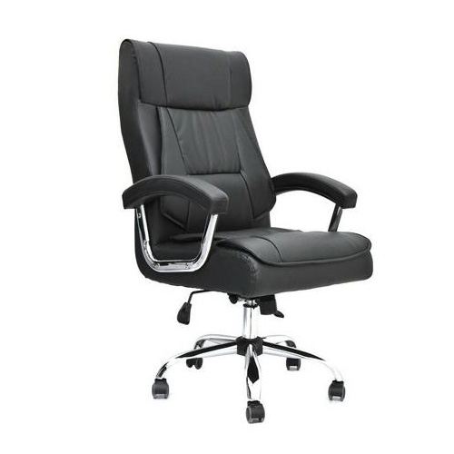 - Espaldar alto acolchado tapizado en cuerina negra.